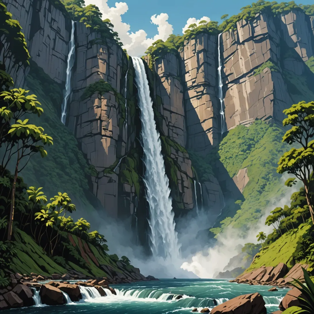 Водопад — это природное явление, когда река или поток воды стремительно падает с высоты, образуя каскад воды. Шум водопада возникает из-за удара воды о камни или поверхность внизу, а также из-за турбулентного движения самой воды. Чем выше водопад и больше объём воды, тем громче его шум.